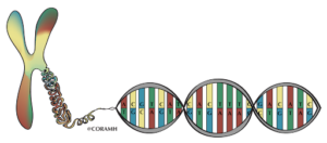 Les gènes sont l’unité de base de l’hérédité. Nos 23 paires de chromosomes sont composées par l’ADN qui porte nos gènes. Un gène est donc une portion d’ADN (on parle aussi de séquence d’ADN).